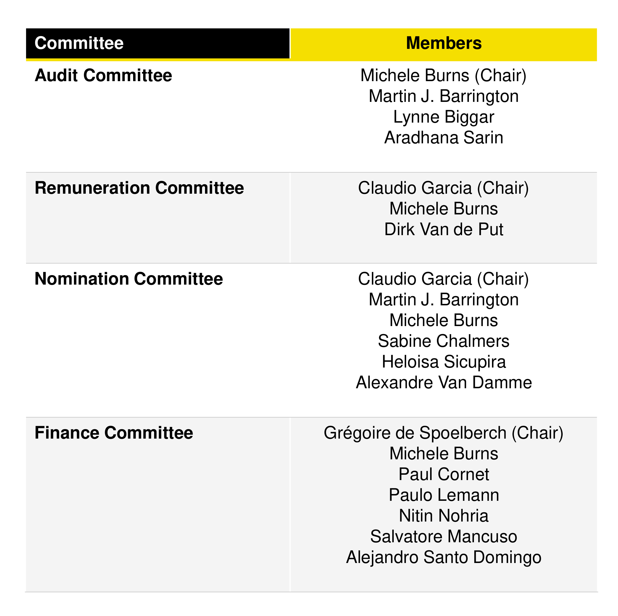 The Board is assisted by four Committees: The Audit Committee, the Finance Committee, the Nomination Committee and the Remuneration Committee. Board Committees meet to prepare matters for consideration by the Board. Membership is detailed below.