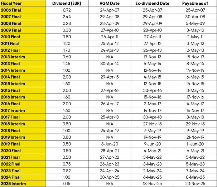 Two billion US dollars Share Buyback Program announced on 31 October 2024 and completed on 26 June 2025. The program was being executed under the powers granted at the General Meeting of Shareholders on 28 April 2021.